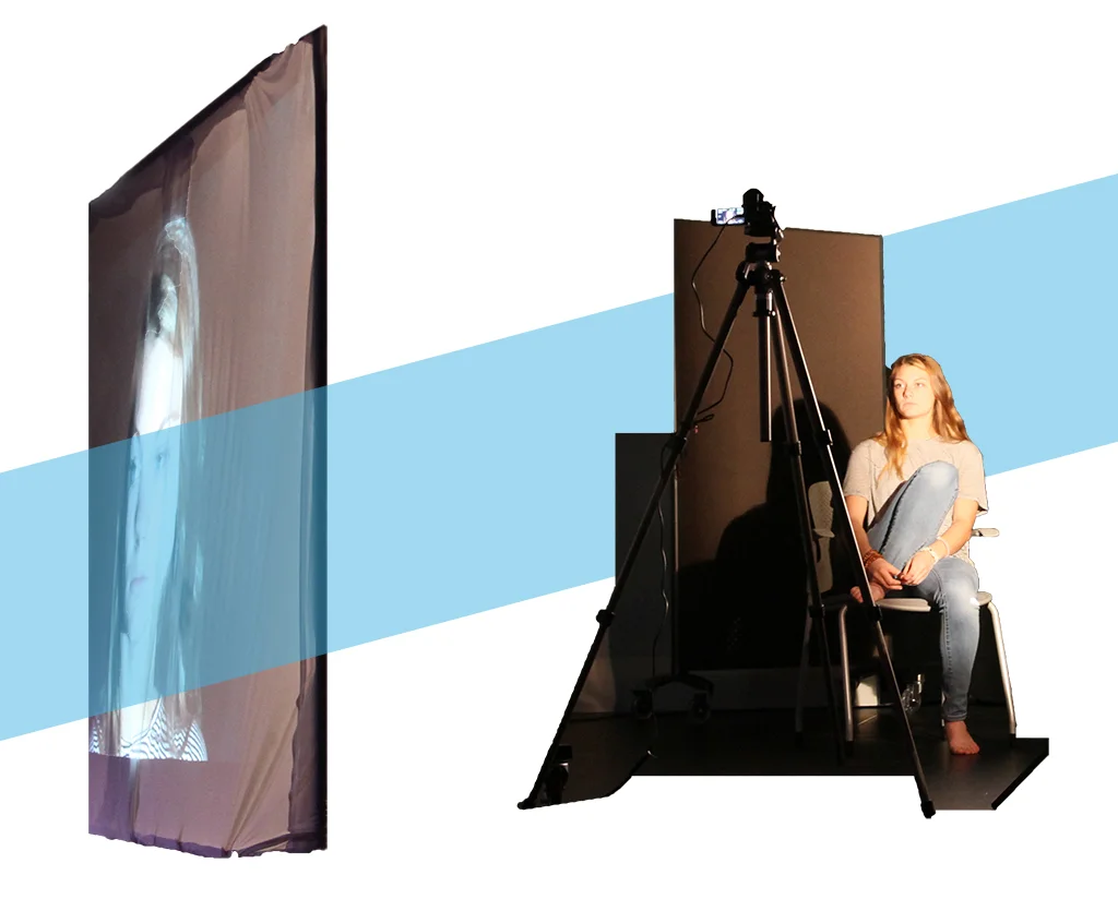 I’d also like to think that Dixon’s description of Monika Fleischman, Wolfgang Strauss, and Christian-A. Bohn’s portrayal of the Narcissus myth in Liquid Views inspired some of students’ lab work with digitally-projected portraits. One student wrote: